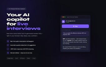 Rupert Interview, mülakatlar sırasında gerçek zamanlı transkripsiyon ve öneriler sunan bir yapay zeka asistanıdır. Chrome tarayıcısı için geliştirilmiş olan bu eklenti, kullanıcıların mülakat esnasında sorulara yanıt vermelerine yardımcı olur. Kullanıcılar, mülakat sürecini daha az stresle geçirebilmek için Rupert'ın sunduğu hızlı ve etkili yanıt önerilerini kullanabilirler. Eklenti, Google Meet, Zoom ve Microsoft Teams gibi çeşitli tarayıcı tabanlı platformlarla uyumlu çalışır ve kullanıcıların dikkatini dağıtmadan yanıtlarını vermelerine olanak tanır.